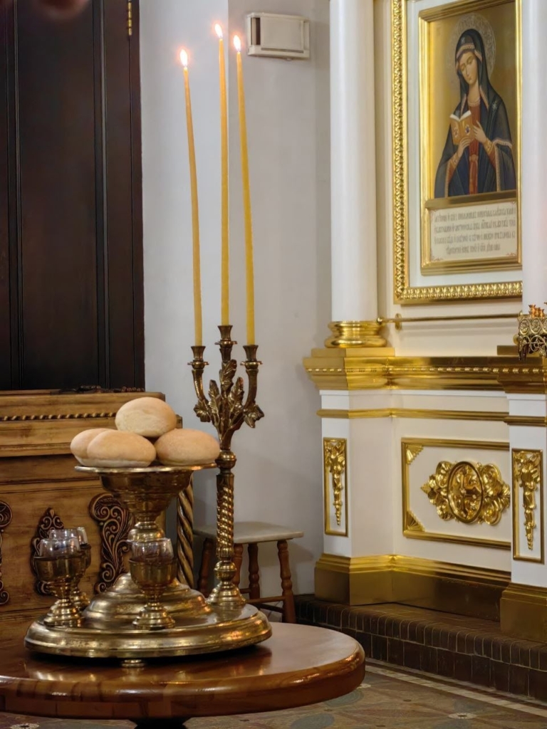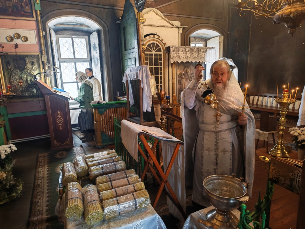 В храме Димитрия Солунского в Рябушках, утром после божественной литургии настоятель храма протоиерей Василий Лапин освятил Сретенские свечи.